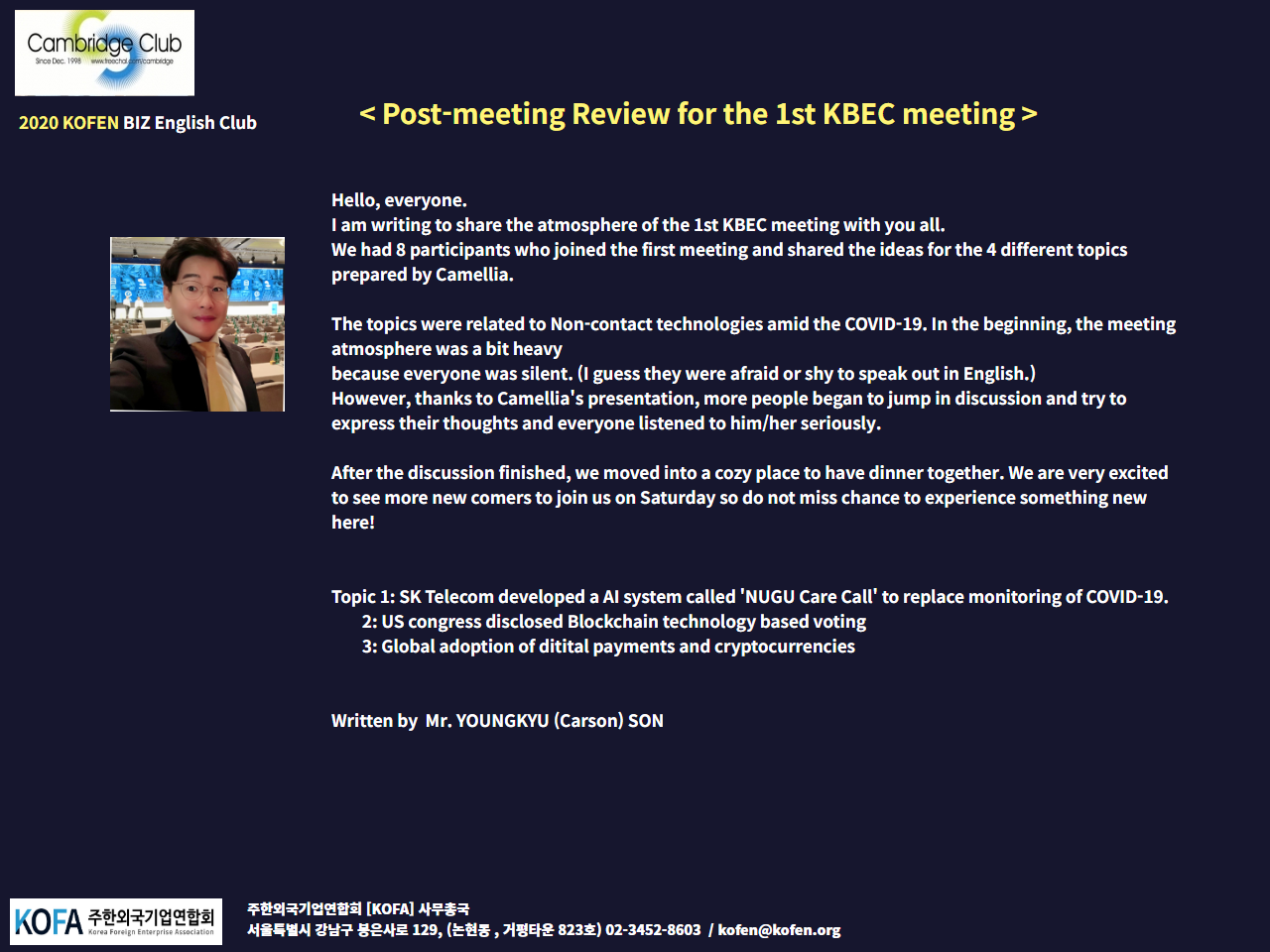 I am writing to share the atmosphere of the 1st KBEC meeting with you all.